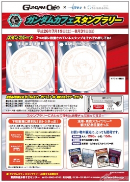Pick up a blank sheet on most Tobu lines (except Tojo and Ogose lines, and some stations on other lines), get it stamped at Asakusa Station and Tokyo Sky Tree Station, then bring it to Gundam Café Satellite for original Gundam Café stickers and a drink coupon! (Offer limited to first 10,000 participants)