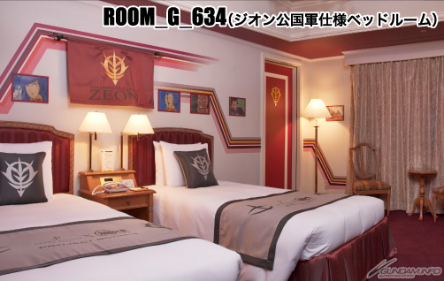 スペシャルルームは、 「ガンダム」と「シャア専用ザク」の圧巻のビッグウォールが目を惹く!さらに、劇中のリアルなサウンドも再現され「目覚めよ!国民!」と、 ギレン総統からのモーニングコールも!細部までこだわった仕様に感激すること間違いなし!