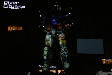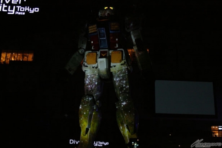 ▲実物大ガンダム立像に煌めく星々が映し出される!