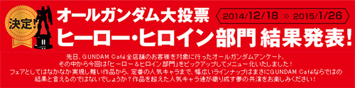 GUNDAM Cafeにて本日12月18日より「オールガンダム大投票」から上位キャラクターの特別メニュー登場!