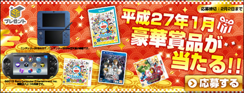 ○Bコース … PlayStationVita Wi-Fiモデルブラック(PCH-2000 ZA11)[10名]