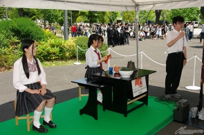 当日は、「高校生野点(のだて)~茶道によるおもてなし~」と銘打ち、東京都高等学校文化連盟茶道部門がガンダムのボディカラーをイメージした棗などのこだわった道具でお点前を披露。また、ライブステージでは、富士見丘高等学校による書道パフォーマンスや東京都立狛江高等学校による筝曲演奏などに加え、東京都立町田総合高等学校のバトントワリングや東京実業高等学校のマーチングバンドも登場し、外国人観光客も含め臨海副都心を訪れた多くの人々を楽しませた。