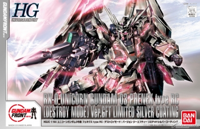 GUNDAM FRONT TOKYO EXCLUSIVE "HGUC 1/144 UNICORN GUNDAM 03 PHENEX TYPE RC (DESTROY MODE) VER.GFT LIMITED SILVER COATING" + BD "GUNDAM RECONGUISTA IN G FROM THE PAST TO THE FUTURE" SET Price: ¥7,560