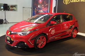 「シャア専用オーリスII」は、新型オーリスをベースに開発されたカスタマイズカーで、4種のグレードから選べるコンプリートカーと個別のカスタムパーツが、10月1日(木)より全国のネッツトヨタ販売店を通じて発売される。