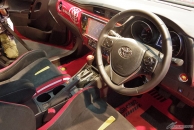 まずは、トヨタマーケティングジャパンの田浪 優氏と、トヨタ自動車の平松 主氏、トヨタモデリスタインターナショナルの町田隆夫氏から車両紹介があり、アニメの中でモビルスーツが進化しているのと同様に車も進化しており、2013年発売の初代「シャア専用オーリス」から格段の進化を遂げているとのことだ。