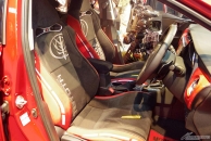 最新のモビルスーツをイメージした外装デザインは、バンダイナムコグループ全面協力によるもので、左右非対称のデカールでより存在感をアップ。内装も大佐の階級に見合った高級感が味わえる、乗り心地に優れた専用シートを装備するほか、モビルスーツに乗っているような気分になれるサウンドエフェクトなどを搭載する。
