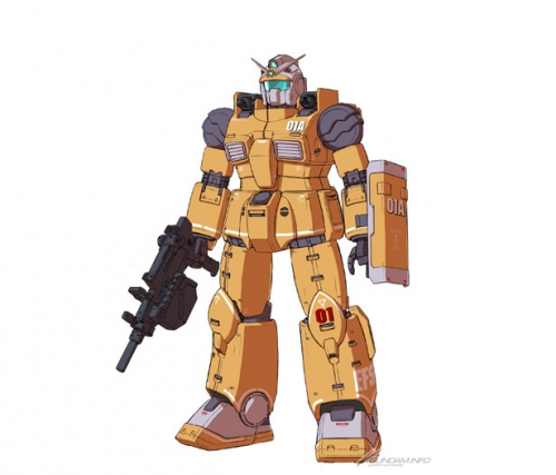 RCX-76-02 ガンキャノン最初期型の開発では、武装その他の仕様を決定するため、評価試験用に装備の異なる機体が製作された。RCX-76-01Aでは主に機動性能を確認するため、動力および駆動系の試験が実施された。両肩は左右ともガトリング砲に換装され、頭部のアンテナはV字型のタイプが検討されていたようだ。RCX-76-01Aで得られたデータは、開発元のアナハイム・エレクトロニクス社フォン・ブラウン工場に集約され、RCX-76-02に反映された。
