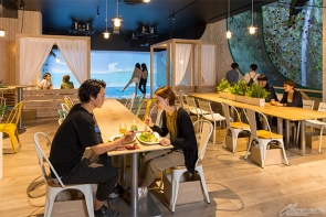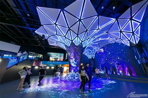 また、外壁にパックマンが登場するプロジェクションマッピングが行われるほか、施設の中心にそびえ立つ巨大な木「センターツリー」のあるエリアでは、照明とプロジェクションマッピングを使った光の演出も実施。飲食エリアやオリジナルグッズも用意され、施設全体でエンターテインメント空間を楽しむことができる。