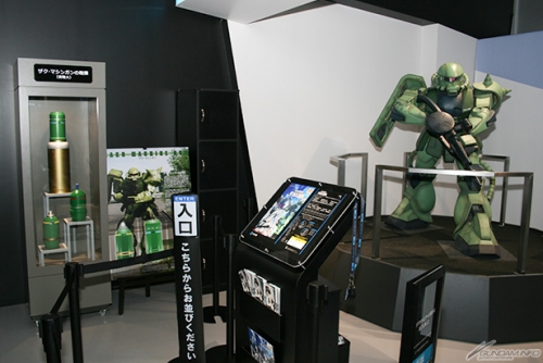 ▲「ガンダムVR ダイバ強襲」のスペースには、ザクの立像が登場!さらに、作中で印象的な「ザク・マシンガンの砲弾(実物大)」も展示!