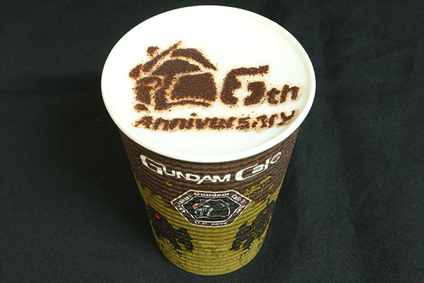 Dès le 19 avril café officiel de Gundam « Gundam Cafe Odaiba », un café au lait commémorant le 6e anniversaire est disponible pour un temps limité. Le prix est de 464 yens (taxes incluses).