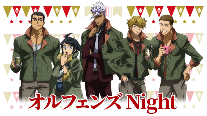 Le "Orphans nuit" commémore "Rassemblement de Tekka équitable ~1ère fête d’anniversaire de Tekkadan, avec une soirée limité nourriture sertie de gâteau d’anniversaire qui est livré avec une planche de bienvenue de Tekkadan. Un menu additionnel de "Rassemblement de Tekka équitable" menu ainsi qu’un Grand Menu sont également disponible.