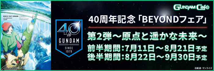 À chacun du café officiel de Gundam "Cafe de Gundam" et "La place de Gundam" à Osaka, à partir du 11 juillet, 2019 (Thu), "Mobile Suit Gundam 40th Commemorative au-delà de Vol équitable. 2 ~Origine et un avenir lointain" aura lieu.