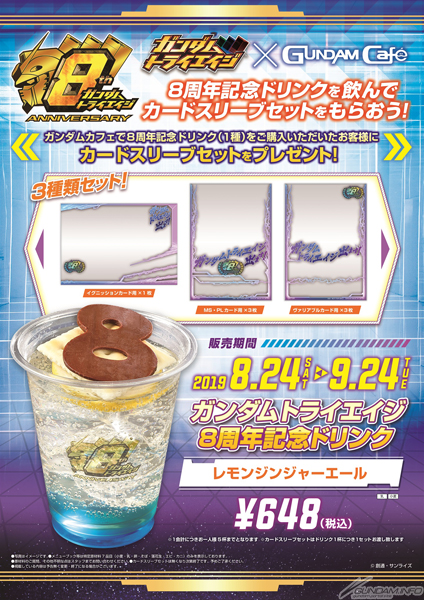 Dans chaque café officiel de Gundam "Café Gundam, et "Place Gundam" à Osaka, la boisson commémorative du 8e anniversaire pour le jeu de cartes numérique actuellement populaire "Gundam Essayez-âge" paraîtra le 24 août, 2019 (Sam).