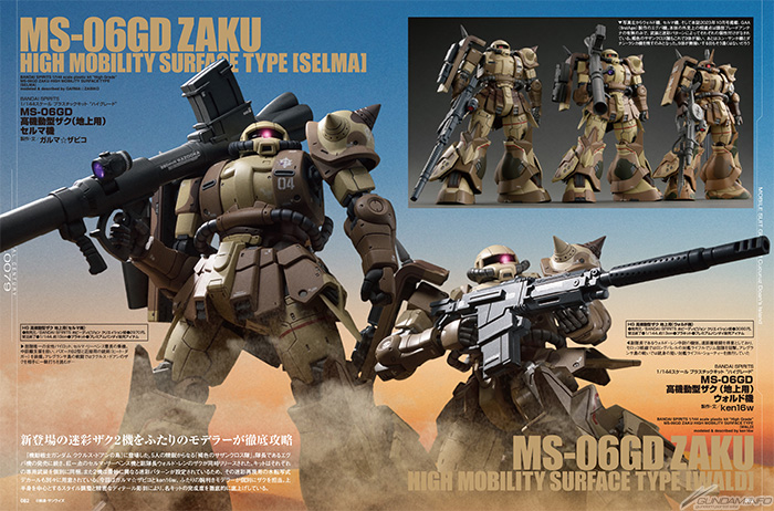 Le magazine présente des exemples d’assemblage du MS-06GD Zaku High Mobility Surface Type deMobile Suit Gundam Cucuruz Doan’s Island!