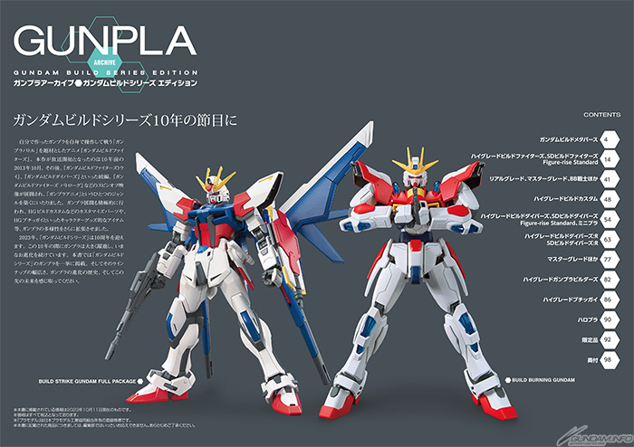Le livret bonus fourni avec ce numéro, GUNPLA Archive Gundam Build Series Edition, présente les GUNPLA de la série Gundam Build, tels queGUNDAM BUILD FIGHTERS, ainsi que ses produits dérivés et ses articles en édition limitée.