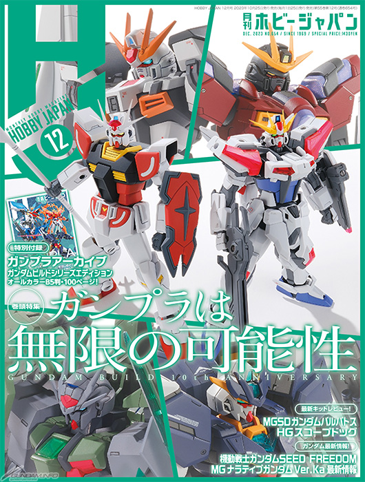L’article de fond du numéro de décembre est consacré auSérie Gundam Build, célébrant son 10e anniversaire, dont le célèbreGUNDAM BUILD FIGHTERS!