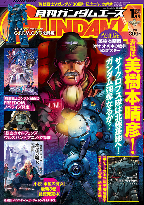 Haruhiko Mikimoto’s War in the Pocket pour la couverture et le cadeau bonus ! Mensuel GUNDAM Un numéro de janvier 2024 publié aujourd’hui !