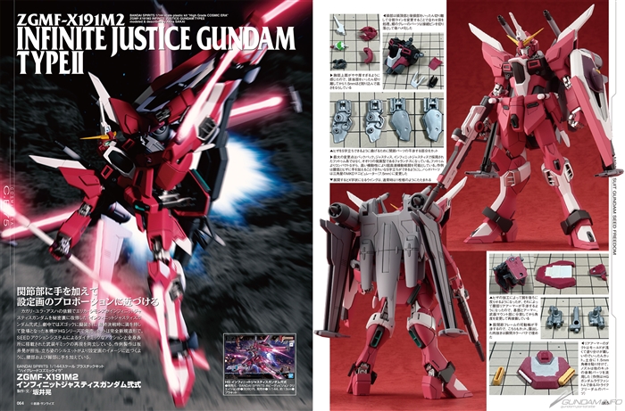 Le modéliste professionnel Akira Sakai a créé le ZGMF-X191M2 Infinite Justice Gundam Type II à partir deMobile Suit Gundam SEED FREEDOM. La taille et les jambes ont été modifiées pour rapprocher la silhouette debout de l’image du dessin de conception.