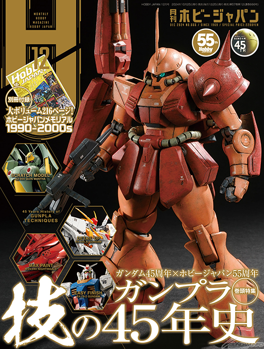 Hobby Japan 55th × Gundam 45th Double ANNIVERSARY Special : 45 ans de technologie GUNPLA ! Le numéro mensuel de décembre 2024 de Hobby Japan est en vente aujourd’hui !