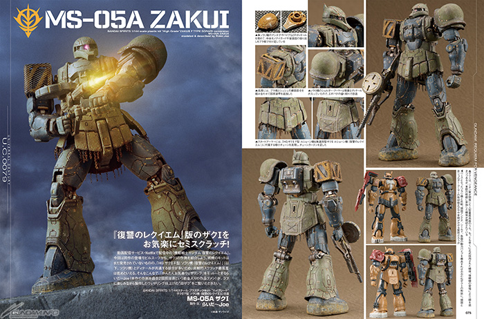 Ce modèle a été fabriqué à l’aide du HG Zaku II F Type Solari (RFV) et est relativement facile à fabriquer. Découvrez ce « vieux Zaku » avec une finition patinée appliquée par le modéliste professionnel Rider Joe !