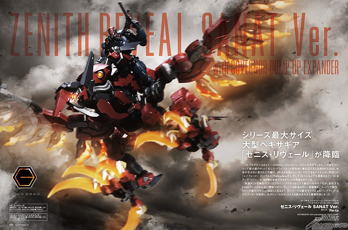 Présentation de la version Zenith Reveal SANAT de la série de blocs de kit à l'échelle 1/24 de Kotobukiya Hexa Gear ! Ce modèle a été créé par le modéliste professionnel Re-ta. Le kit est à l’origine un Hexa Gear bleu et blanc fabriqué par Earthcline Biomechanics, mais il a reçu un changement de couleur et des modifications, le faisant ressembler à une machine rouge capturée par leur rival SANAT.