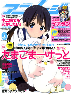 Get a world's-first peek at the January 2013 premiere of Tamako Market with our cover story♥ We bring you your first look at Kyoto Animation's new series from K-On! director Naoko Yamada, writer Reiko Yoshida, and designer Yukiko Horiguchi. Read Yamada and Yoshida's interview,see an illustration from Horiguchi, and let the staff walk you through the cuteness of Tamako's world. Read before you watch☆ Continuing on our KyoAni special, we've got 12 pages of Chuu2! Rika, Mori Summer, Kumin, and Dekiomori's actresses, plus director Tatsuya Ishihara, give climax interviews! KyoAni fans shouldn't miss this issue! Plus, there's a huge Inazuma Eleven GO vs. Little Battlers eXperience pullout! At a hefty 36 full-color A4 pages, it's a must-have for IE/LBX fans!♥