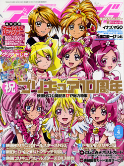 アニメージュ4月号は『映画プリキュアオールスターズ NewStage2 こころのともだち』が表紙に登場! 絵柄は、プリキュア10周年を記念して「歴代ピンクキャラ」が大集合♥ 折り返し面にその他のプリキュアたちもいるので、表紙を広げるとプリキュア32人が全員集合するという豪華な仕掛けです。付録も歴代プリキュアシリーズから最近の3作品『ハートキャッチ』『スイート』『スマイル』(すべてキャラデザイナーの原画)に、『映画NS2』を加えたクリア下敷き4枚セット。綴じ込みポストカードもプリキュアで、川村敏江さんによる『スマイル』最終話のエンドカード+『ドキドキ』『NS2』とお得な3種をそろえました♪ 特集も17ページという大ボリューム! 『NS2』から『DX3部作』『ドキドキ』まで、ここでしか読めない記事が目白押しです☆ 図書カードの応募者全員サービスもあって、この号はプリキュアファンならマストアイテムですネ♥ さらに話題の『ガールズ&パンツァー』も大フィーチャー! 描きおろしポスターにBOOK in BOOK、設定資料ファイルとこちらもたっぷり掲載していますよ☆