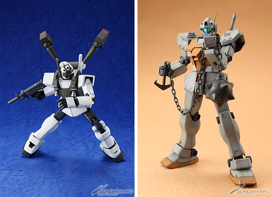 ▲ストーリーに登場する「ジム・ナイトシーカー」と「ジム改」の作例も。ガンダム・ハンマーは溶きパテで表現!