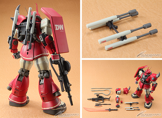 ▲ロケットブースターは「MG ザクIIF2型」から流用。ネオジム磁石により簡単に取り外しができるなど、キラリと光るテクニックも。さらにヒート・ソードなどの武器もあわせて製作!