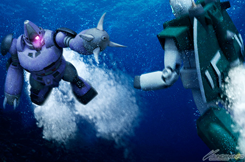 ▲第4話では、お宝を求めて海の底へ。マサが乗る水陸両用型の試作MS「ジュリック」に襲いかかるのは「ジム・スループ」!