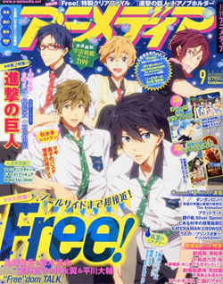 8月10日(水)発売の「アニメディア9月号」では、好評放送中の『Free!』が表紙を飾り、巻頭大特集「プールサイドまで超接近!」では、出演キャストの島崎信長氏&鈴木達央、宮野真守&代永 翼&平川大輔による“Free”dom TALK!が楽しめる。