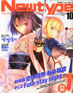 The October issue of Newtype, on sale September 10th, features The Garden of Sinners: Möbius ring and Fate/stay night on its cover!