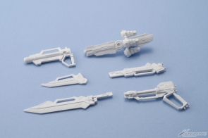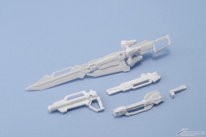 「カレトヴルッフ炎」とは、大型剣と大型銃に変形する象徴的武器「カレトヴルッフ」が、本作の主人公コウエン・ユウセイの成長に伴ってパワーアップしたもので、本キットは6つの武器と「ハイパーΖガンダム炎」が再現できる強化パーツの超豪華セットとなる。