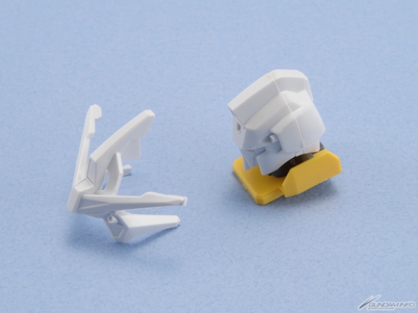 ▲ヘッドギアは驚異のワンパーツ成型。別売の「HGUC Ζガンダム」に無改造で装着できる。