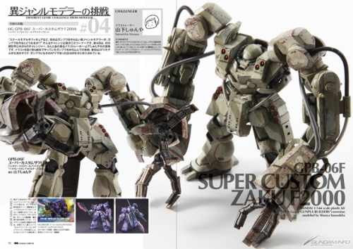 さらに、普段はガンプラを作らないというイラストレーターの山下しゅんや氏が過去に趣味で作ったという「HG スーパーカスタムザクF2000」の披露や、おなじみのハウトゥ講座まで盛りだくさんの内容となっている。