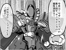 Ganya Morimoto, author of the SD GUNDAM.INFO series on GUNDAM.INFO, introduces a range of Gunpla. Chapter 4 covers the Titans' "HGUC Hambrabi" from Mobile Suit Zeta Gundam.