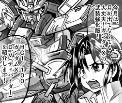 ガンダムインフォで好評連載中のレポートマンガ 「SDガンダムいんふぉ」でおなじみの森本がーにゃ先生が、毎回様々なガンプラをマンガで 紹介するコーナー。第5回は『機動新世紀ガンダムX』からガンダムXの拡張機体「HG ガンダムXディバイダー」を紹介する。