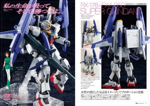 今号は宇宙世紀のガンダム世界を彩った女性パイロットたちをフィーチャーし、ハマーン・カーンの「キュベレイ」をはじめ、「スーパーガンダム」、「ボリノーク・サマーン」、そして「R・ジャジャ」など、GHLならでは超絶作例で彼女たちの活躍を綴る。