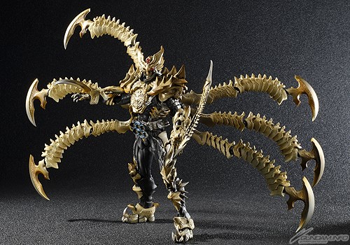 巨悪を体現したかのような恐るべきマスクに、骨をモチーフとした外装、6枚の巨大な触手など、まさに悪の首領に相応しい凶悪なデザインとなっている。