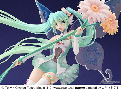 初音ミクGTプロジェクト専用キャラクター「レーシングミク」2017Ver.が登場です。TONY氏によって、今シーズンのマシンのサイドに描かれたイラストを元に立体化された本フィギュアは、まるでお花畑の上で舞い踊っているかのような、浮遊感溢れる仕上がりとなっています。