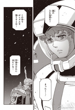 マンガを描くのは「機動戦士ガンダム MSV-R 宇宙世紀英雄伝説 虹霓のシン・マツナガ」の虎哉孝征氏、メカニックデザインは『ガンダム Gのレコンギスタ』、『機動戦士ガンダム 鉄血のオルフェンズ』の形部一平氏が手がけ、一挙70ページ超で始まる第1話には、ロンド・ベル隊に所属するアムロ・レイも登場する。