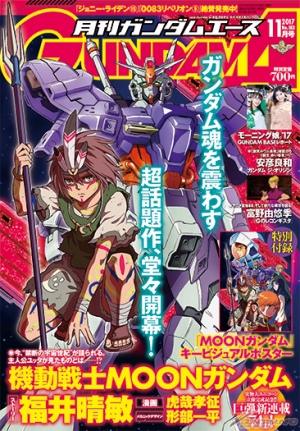 ガンダムエース11月号では、連載開始記念として福井晴敏氏のロングインタビューが掲載されるほか、特別付録として「MOONガンダム」のキービジュアルポスターが付属する。