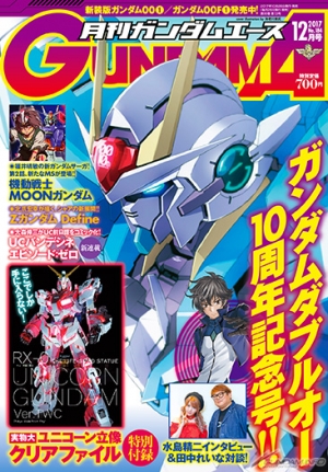 月刊ガンダムエース12月号では、実物大ユニコーンガンダム立像グランドオープン記念として特製クリアファイルが付録として付いてくるほか、『機動戦士ガンダム00』10周年を記念した水島精二監督インタビュー&対談を掲載。こちらもお見逃しなく。