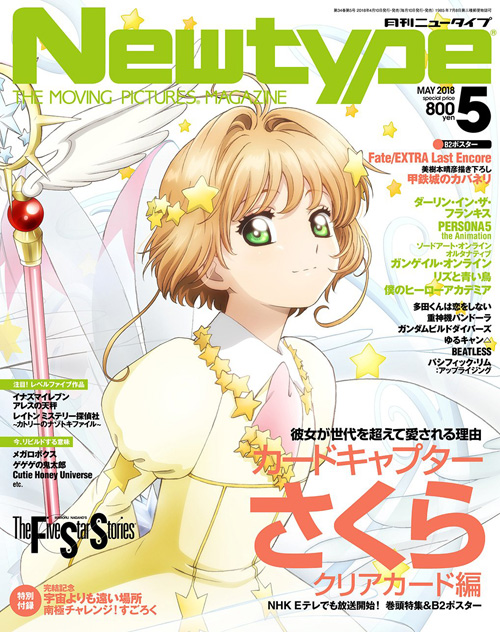 Le mai de NewType problème 2018, publiée sur le 10 avrilth(AUT), dispose Cardcaptor Sakura : Carte Clear Arccomme la couverture et élément d’ouverture.