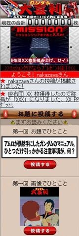 Namco Bandai Games' official mobile site Gundam Perfect Mobile has begun the 'Gundam Oogiri' promotion to celebrate its millionth member!