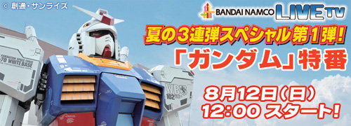 The Namco Bandai Group's 'Bandai Namco Live TV' streaming service airs the 'Gundam Summerfest' at noon on August 12th, the first of its three summer specials!