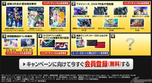 * Requires free Super Robot Wars Official Site Premium Members Club and/or free Bandai Channel membership.