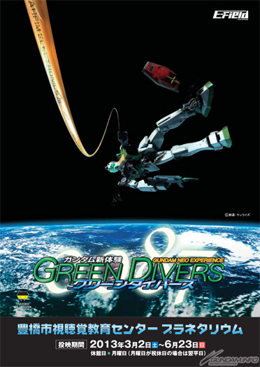 The planetarium-spanning Gundam Neo Experience 0087: Green Divers will be at the Toyohashi Audio-Visual Education Center Planetarium in Aichi weekends and holidays through 6/23! Admission is ¥300 for adults, ¥100 for children. Two showings are planned daily, at 11:00 AM and 3:30 PM.