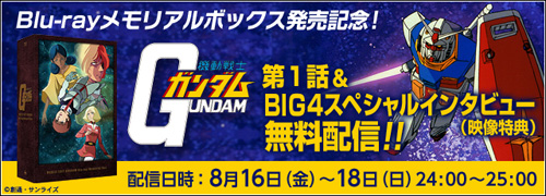 「機動戦士ガンダム Blu-rayメモリアルボックス」発売記念!第1話&BIG4スペシャルインタビュー、8月16日より3夜連続無料ライブ配信!