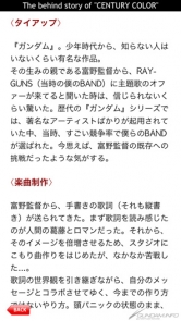 ∀ガンダム主題歌“CENTURY COLOR”Music App 販売価格 : 300円 対応機種 : iPhone、iPad および iPod touch 対応。 iPhone 5用に最適化済み(iOS 5.0 以降) 購入方法 : App Storeにて配信中 配信開始 : 2013年11月4日 |